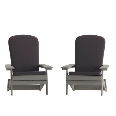 Flash Furniture Indoor/Outdoor Folding Adirondack Chairs with Cushions - Set of 2