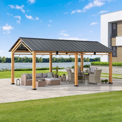Sunjoy 11x13 Wood Carport, Outdoor Living Pavilion, Wooden Gazebo with Ceiling Hook