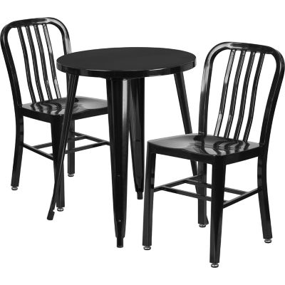 Flash Furniture 3 pc. Round Metal Indoor/Outdoor Bistro Set with 2 Vertical Slat Back Chairs, 24 x 29in.