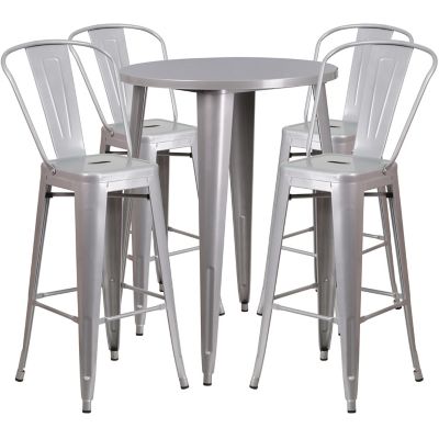 Flash Furniture 5 pc. 30 in. Round Metal Indoor/Outdoor Bar Table Set with 4 Cafe Stools, Silver