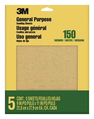 3M 9 in. x 11 in. 150 Grit Fine Aluminum Oxide Sandpaper, 5-Pack