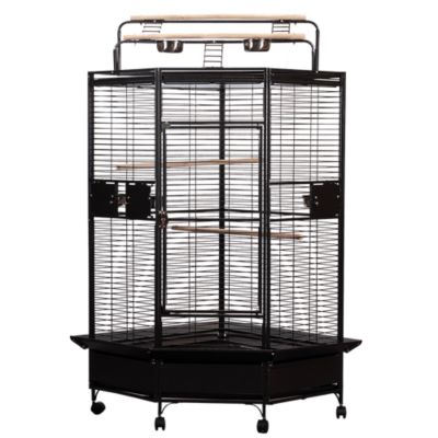 A&E Cage 32 x 32in. Corner Bird Cage with Playpen, Black