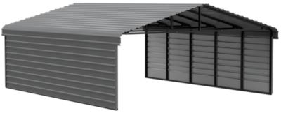 Arrow 20 x 24 x 9 ft. Charcoal Carport with 2 Sided Enclosure