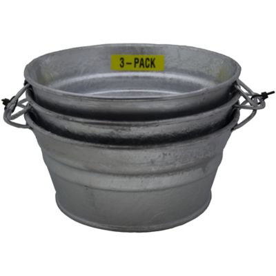 1 qt. Hot Dipped-Zinc Steel Round Low Flat Tubs, 3-Pack