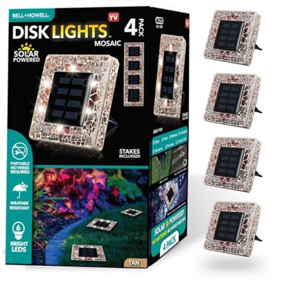 Bell & Howell Mosaic Disk Lights Tan Solar Powered LED Waterproof Square Path Light (4-Pack)