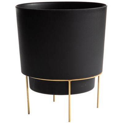 Bloem 0.75 gal. Plastic Hopson Round Planter with Gold Metal Stand, 6 in.