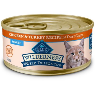 Blue Buffalo Wilderness Wild Delights Minced Chicken and Turkey Recipe Wet Cat Food, 5.5 oz.