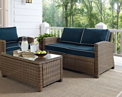 Crosley Bradenton Outdoor Wicker Loveseat, Navy