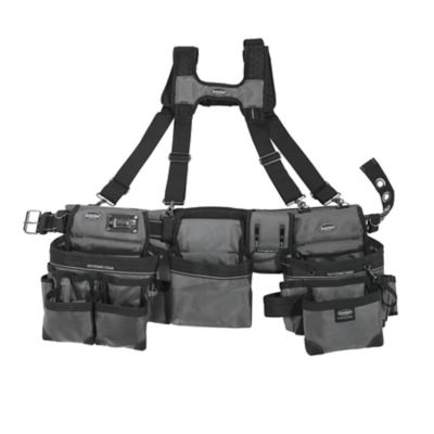 Bucket Boss 3 Bag Framers Rig Tool Belt with Suspenders, Gray