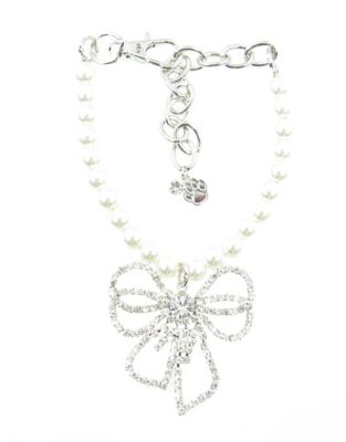 Buddy G's Pearl Dog Collar with Rhinestone Bow, 90266DCCRST