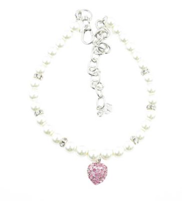 Buddy G's Pearl Dog Collar with Rondelles and Glass Stone Heart