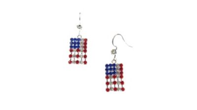 Buddy G's Small Patriotic American Flag Rhinestone Fringe Fishhook Earrings