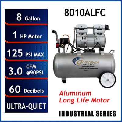 California Air Tools 8010ALFC Ultra Quiet & Oil-Free 1.0 Hp 8.0 Gal. Aluminum Tank Air Compressor