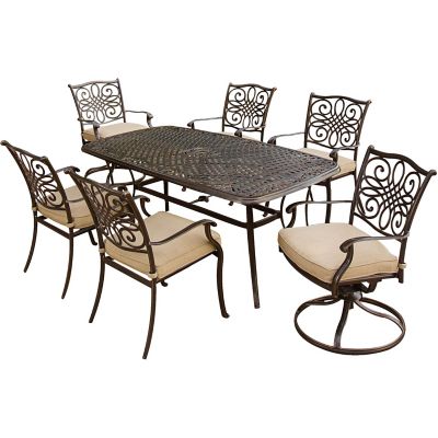 Cambridge Seasons 7-Piece Outdoor Dining Set in Tan with Four Dining Chairs, Two Swivel Chairs and a 38 x 72 in. Table
