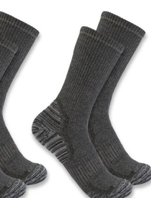 Carhartt Men's Force Midweight Synthetic Wool Blend Crew Socks, Charcoal, Large, 2-Pairs
