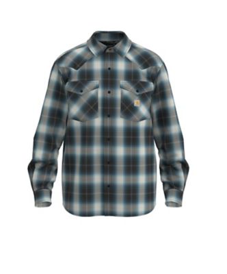Carhartt Men's Rugged Flex Montana Relaxed Fit Lightweight Snap-Front Plaid Collared Long-Sleeve Work Shirt