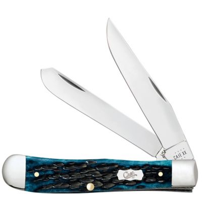 Case Cutlery 3.24 in. and 3.27 in. Worn Bone Trapper Pocket Knife, Mediterranean Blue