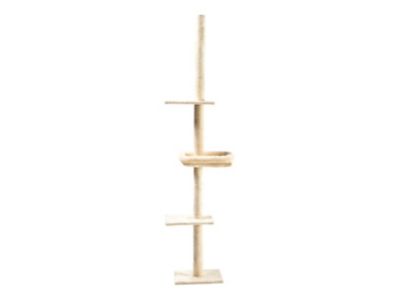 Cat Craft 90 in. 4-Level Adjustable Floor-to-Ceiling Soft Plush Cat Tree with Bolster Cat Bed, Cream
