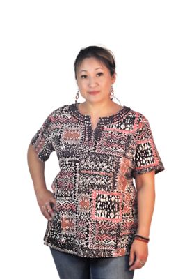 CCCStore Short Sleeve Ric Rac Split Neck Printed Knit Top