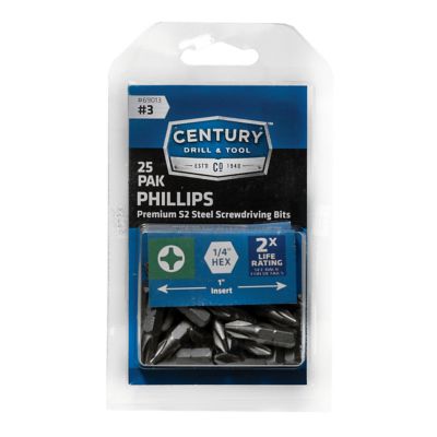 Century Drill & Tool Phillips Screwdriving Bit, 3 x 1, 25-Pack