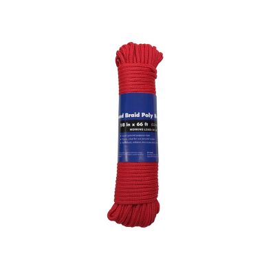 CORDA 1/8 in. x 66 ft. Red Diamond Braid Polypropylene General Purpose Rope