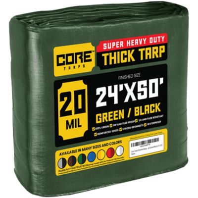 Core Tarps 24 ft. x 50 ft. Tarp, 20 Mil, Green/Black