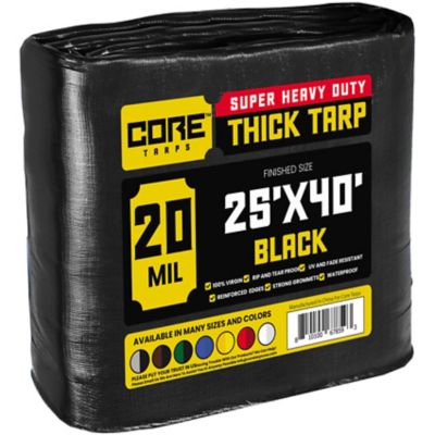 Core Tarps 25 ft. x 40 ft. Heavy-Duty Waterproof UV-Resistant Rip- and Tear-Proof Polyethylene Tarp, 20 Mil, Black