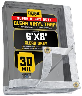Core Tarps Ultra Heavy Duty Vinyl Tarp, Waterproof, UV Resistant 30 mil Clear, Grey 6 x 8