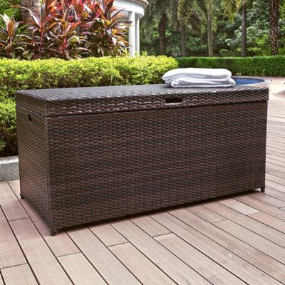 Crosley Palm Harbor Outdoor Wicker Storage Bin, 5 in. x 52 in. x 25 in., Fits Cushions Up to 24 sq. in., Brown