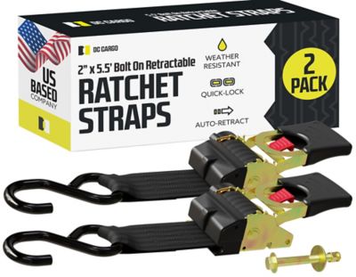 DC Cargo 2 in. x 5.5 in. 1,333 lb. Capacity Bolt-On Auto-Retract Ratchet Straps with S-Hook, 2-Pack
