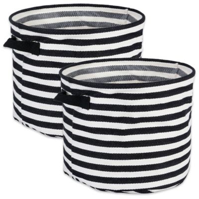 DII Herringbone PE-Coated Round Storage Bins, Black, Medium, 2-Pack