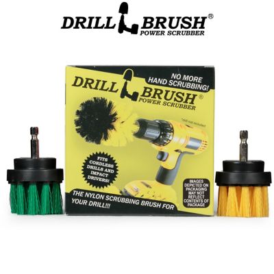 Drillbrush 2pc. Indoor Power Spin Brush Set, Kitchen, Cast Iron Skillet, Oven Cleaner, Baking Pan, Grout Cleaner, 2IN-S-GY-QC-DB