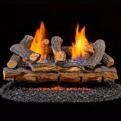 Duluth Forge DLS-N24R-1, Vent Free Gas Log Set, Ember Chassis: Natural Gas, Remote Thermostat, and Fiber Logs: 24 in. Split Oak
