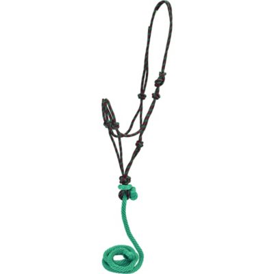 DuMOR Braided Rope Horse Halter with 7 ft. Detachable Lead, Turquoise/Pink
