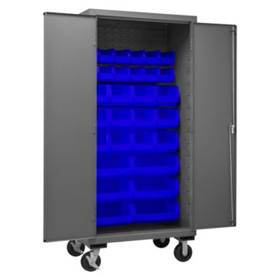 Durham MFG 30-Bin Mobile Steel Cabinet, 36 in. x 24 in. x 81 in., Blue/Gray, 3501M-BLP-30-5295