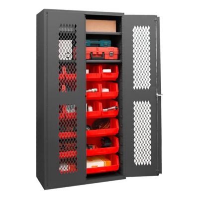 Durham MFG 14 Gauge Ventilated Cabinet, 36 in. x 18 in. x 72 in., 18 Red Bins