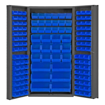 Durham MFG 14 Gauge Deep Door Cabinet, 36 in. x 24 in. x 72 in., 132 Blue Bins