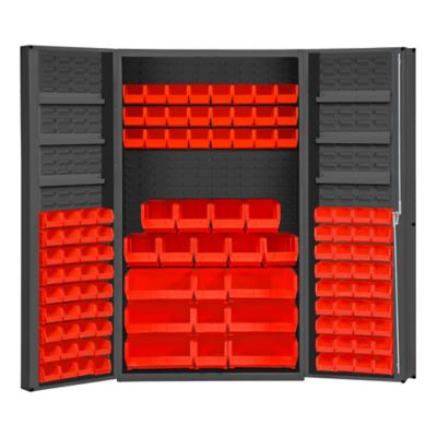 Durham MFG 14 Gauge Deep Door Cabinet, 48 in. x 24 in. x 72 in., 114 Red Bins