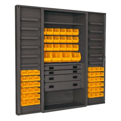 Durham MFG 14 Gauge Deep Door Cabinet, 36 in. x 24 in. x 72 in., 58 Yellow Bins