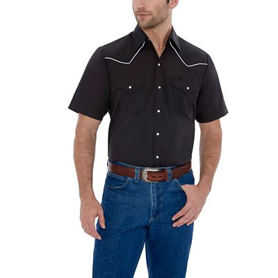 Ely Cattleman Men's Short-Sleeve Snap-Front Solid Shirt with Contrast Piping
