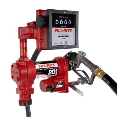 Fill-Rite 1/4 HP 12V Fuel Transfer Pump with Discharge Hose, 20 GPM, Manual Nozzle, Suction Pipe, Liter Meter, FR4211HL