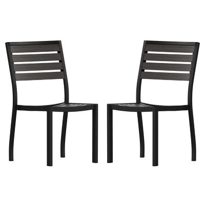 Flash Furniture Lark Outdoor Side Chair with Faux Teak Poly Slats, Set of 2