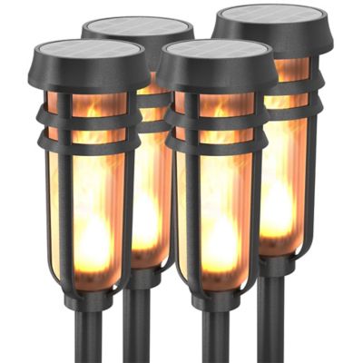 Foxflame Warm White Flicker Flame Torch LED Solar Accent Landscape Light, 4 pk.