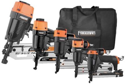 Freeman Pneumatic Framing and Finishing Nailers and Staplers Combo Kit with Canvas Bag, 5 pc.