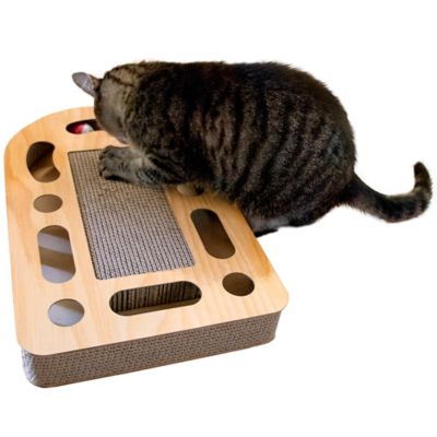 FurHaven Archway Busy Box Corrugated Scratcher with Catnip and 2 Ring Balls