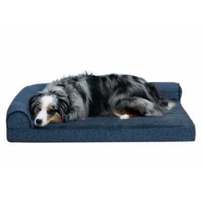 FurHaven Plush Cooling Gel Top Deluxe L-Chaise Pet Bed, Almond Print