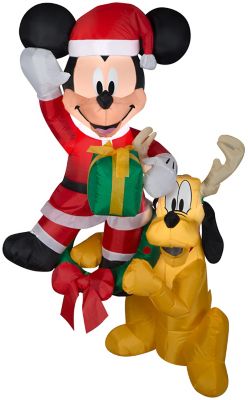 Gemmy 9.84 in. Airblown Inflatable Hanging Mickey and Pluto Christmas Decoration, Disney