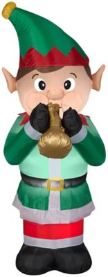 Gemmy 9.84 in. Animated Airblown Mixed Media Elf Playing Trumpet Inflatable Christmas Decoration