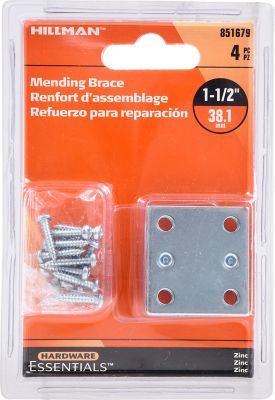 Hillman Hardware Essentials 1-1/2 in. x 1-3/8 in. Mending Plate, Zinc, 4-Pack