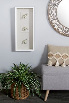 Harper & Willow Large Rectangular Metallic Silver Elephant Animal Wall Art Shadow Box, 12 in. x 27.5 in.